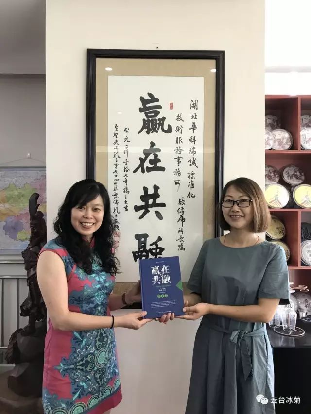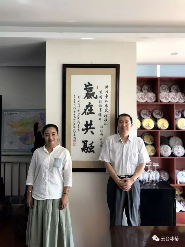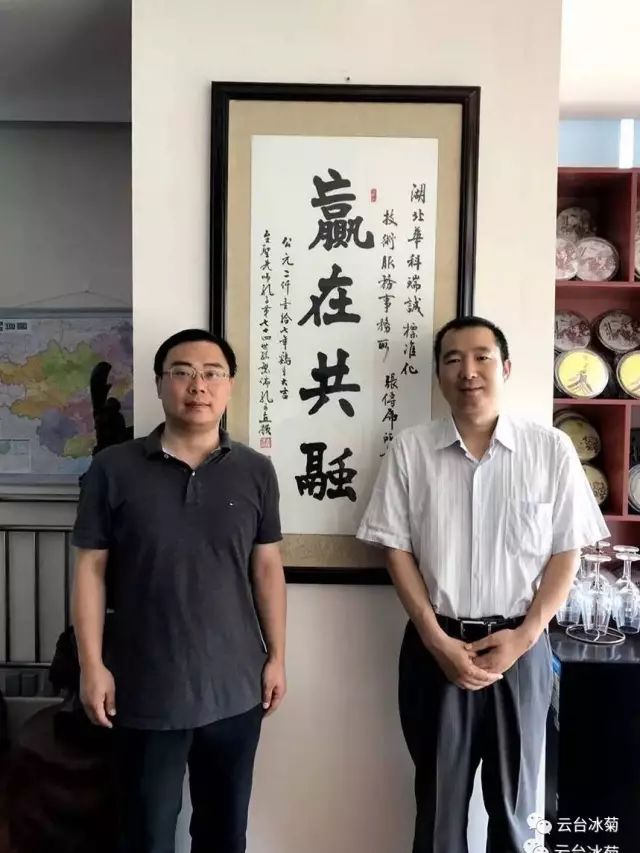 湖北焦作商會(huì)張傳虎會(huì)長(zhǎng)(圖左)與云臺(tái)冰菊崔愛敏總經(jīng)理(圖右)共商云臺(tái)冰菊發(fā)展宏圖